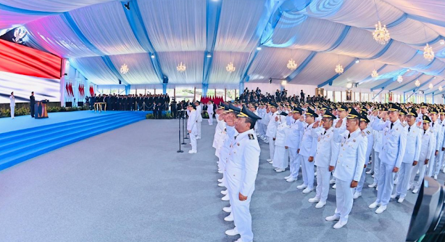 Pada kesempatan tersebut, Presiden Prabowo mengambil sumpah jabatan para kepala daerah yang dilantik.